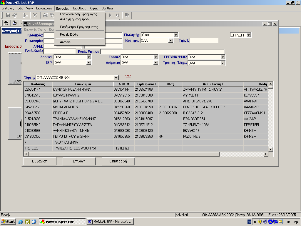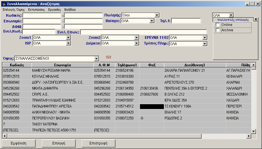 Αν «τσεκάρουμε» την επιλογή Archive τότε θα εμφανιστούν όλοι οι συναλλασσόμενοι.