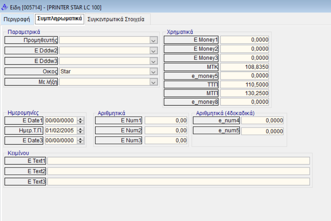 Σημείωση: μας δίνεται η δυνατότητα στην ενότητα αυτή, μέσω ενός module, να ορίσουμε σε πεδία επιπλέον λειτουργίες. Π.χ με double κλικ να βγαίνει η εικόνα του είδους ή ένα pdf αρχείο με τα specifications του είδους.
